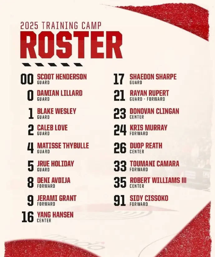 佩尔名单拉德开拓者训练营拉米威廉姆森谢登亨德森布莱克消息资讯凯莱布克林根吕佩尔西索科杨瀚森 的文章